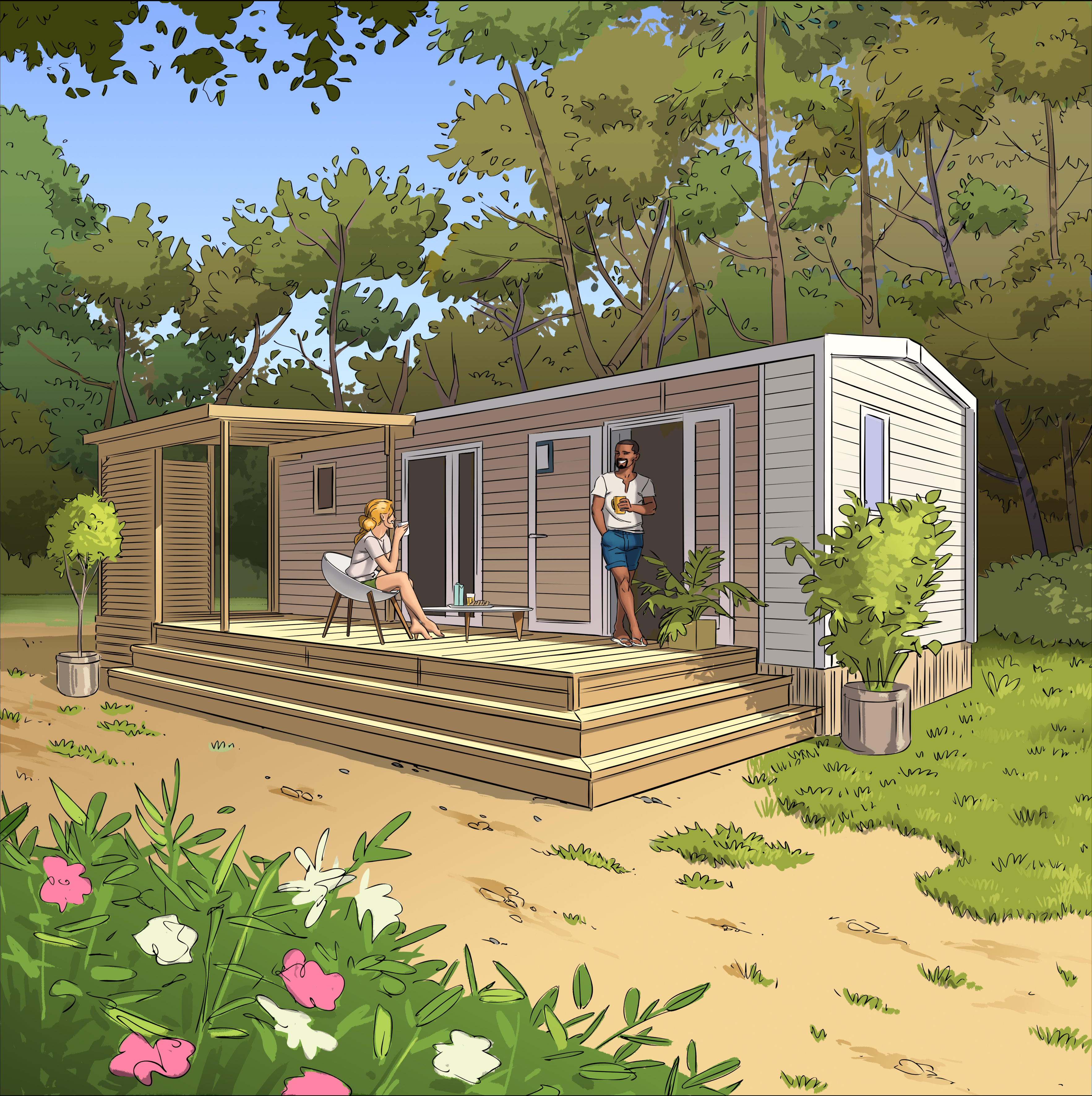 Nous garantissons au-delà de votre mobil-home, sa terrasse, son contenu et ses installations extérieures.