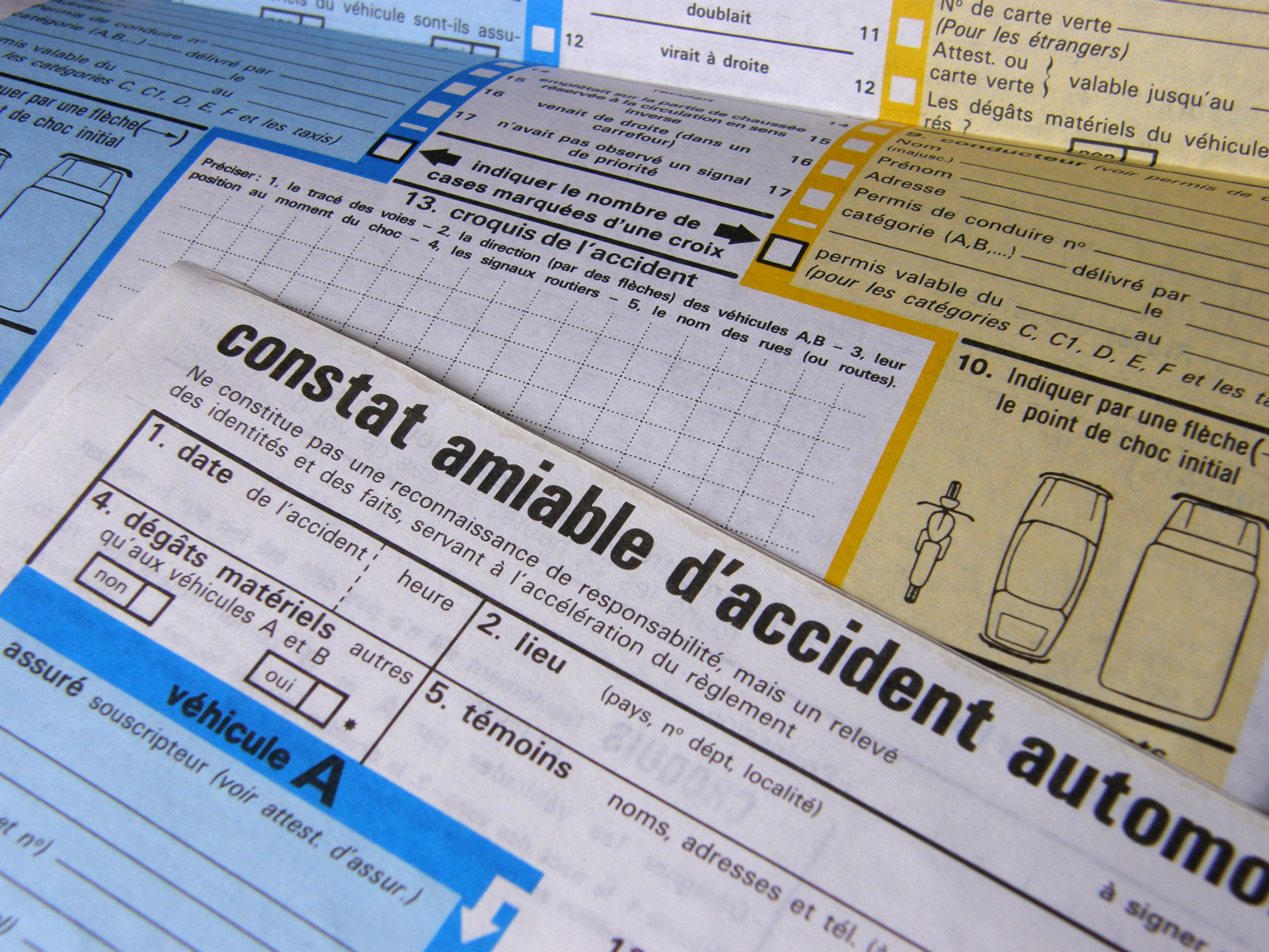 - Rubrique 13 (croquis) : matérialisez clairement l'axe médian, les panneaux (stop, feux), la direction des véhicules et le point de choc initial. Le croquis doit compléter et non contredire les cases cochées.